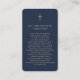 Dimensions cartes de visite : 3,5 po x 2,0 po. Ce simple modèle de carte de prière commémorative sur un arrière - plan bleu classique avec une élégante typographie en or peut être donné comme un souvenir à une célébration de la vie ou un service funéraire ou envoyé comme un hommage spécial à ceux qui n'ont pas pu y assister. Personnalisez cette carte avec une photo préférée et votre choix de prière ou de poème au dos de la carte. Facile à customiser.