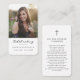 Dimensions cartes de visite : 3,5 po x 2,0 po. Cette simple carte de prière commémorative peut être donnée en souvenir lors d'une célébration de la vie ou d'un service funéraire ou envoyée en hommage spécial à ceux qui n'ont pas pu y assister. Personnalisez cette carte avec une photo préférée et votre choix de prière ou de poème au dos de la carte. Facile à customiser.