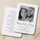 Dimensions cartes de visite : 3,5 po x 2,5 po. Cette carte de prière commémorative élégante peut être donnée en souvenir lors d'une célébration de la vie ou d'un service funéraire ou envoyée en hommage spécial à ceux qui n'ont pas pu y assister. Personnalisez cette carte avec les photos préférées de vos proches et votre choix de prière ou de poème. Facile à customiser. Nos sincères condoléances à vous et à votre famille pendant cette période très difficile.