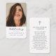 Dimensions cartes de visite : 3,5 po x 2,0 po. Carte de prière funéraire simple. Ajoutez votre photo préférée et votre choix de prière ou de poème au dos de la carte. Facile à customiser. Nos plus sincères condoléances à vous et à votre famille pendant cette période difficile.