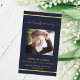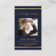 Un arrière - plan bleu foncé, un cadre en faux or et un espace pour votre photo. Personnalisez et ajoutez le nom, les dates et votre texte.