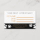 Le texte est modifiable sur cette carte de rendez-vous pour animaux de compagnie pour votre entreprise d'embarquement de chat et de chien. Ce dessin est composé d'empreintes de pattes et de blancs pour indiquer le nom, la date et l'heure de la prochaine visite de l'animal.