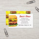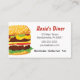 Ces propre et simple, carte de visite est parfait pour favoriser votre wagon-restaurant ou information et heures du restaurant. Il fait également un grand carte de visite pour des chefs, des cuisiniers et d'autres professionnels de l'industrie alimentaire. Cette carte comporte une illustration d'un cheeseburger de regard délicieux. Ajoutez facilement votre propre information à cette carte utilisant les gisements de modèle. Le dos de ce carte de visite a partout un motif lumineux et coloré d'hamburgers, mais vous pouvez également employer ce secteur pour inclure une photo de vos affaires ou de toute autre information. Trouvez plus de cartes de visite et d'autres produits promotionnels dans le magasin de Zazzle de conceptions d'astérisque.