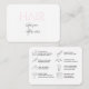 Cette carte est spécialement conçue pour les clients d'extension de cheveux à ramener à la maison comme un rappel de la façon de prendre soin de leurs extensions de cheveux. La carte est assez petite pour s'intégrer facilement à une trousse de soins à la clientèle. Cette carte a certaines des règles les plus essentielles que les clients doivent suivre pour bien soigner leurs cheveux.