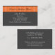 Design carte de visite en Gris poli et orange vif. Ce design élégant et audacieux conviendra à tous ceux qui travaillent dans un domaine professionnel comme la finance, les maisons de vente aux enchères, la comptabilité, l'assurance et d'autres. Faites de ce carte de visite votre propre compte en ajoutant vos renseignements personnels. Ce design simple mais audacieux est sûr de faire le parfait énoncé!