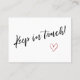 Gardez vos amis et votre famille à jour avec votre nouvelle adresse en utilisant ces cartes d'enceinte simples et élégantes. Vous pouvez les insérer dans vos envois ou les partager en personne, car vous rencontrez des personnes que vous devez avertir. Lorsque vous voulez une méthode distinctive pour faire savoir à votre tribu comment vous trouver, cette carte est suffisamment versatile pour n'importe qui. Il présente de jolis graphiques typographiques qui lisent "We've Moved" sur le devant et "Keep in touch!" sur le dos, en utilisant une police de script moderne, décontractée, manuscrite. J'ai placé une petite illustration de maison sur le contour avant et rouge du coeur aquarelle sur le dos, en ajoutant une touche distinctive. Utilisez les champs modèle pour ajouter tous vos propres détails afin de personnaliser ce design pour votre propre usage. Si vous souhaitez modifier la jolie police sans-serif simple que j'ai utilisée pour le texte modifiable, ou si vous souhaitez déplacer des lignes ailleurs, cliquez sur le lien pour customiser la carte plus loin. Le type noir a été placé sur un arrière - plan blanc modifiable ; vous pouvez changer l'arrière - plan en n'importe quelle couleur. // 90 // Conçu par Melody Watson pour Paper Muserie.