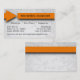 Caractéristiques de conception ce uniques un arrière - plan de cloison sèche de faux avec une flèche orange qui enroule autour de l'avant et du dos de la carte. Il y a d'abondance de texte personnalisable pour que vous ajoutiez toute votre information d'affaires. Montré ici en tant qu'entreprise de construction, cette conception flexible est idéale pour presque n'importe quelles affaires.
