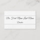 Ce design carte de visite élégant et sophistiqué pourrait être utilisé par un professionnel tel qu'un directeur, un gestionnaire, un entrepreneur ou un superviseur. Le nom, la profession et les coordonnées peuvent être customisés. Le nom et la profession sont en texte de script.
