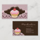 Carte de visite à la mode élégant brun chocolat et rose avec le petit gâteau mignon grand pour tout café-restaurant ou boulangerie ou traiteur ou organisateur.