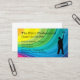 Un design carte de visite peintre professionnel dans un style unique et coloré avec un arc-en-ciel de couleurs arrière - plan graphique et peintre tenant un rouleau de peinture et poignée. Conçu pour un service de peinture commerciale ou résidentielle.