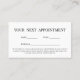 Cette carte de rappel de rendez-vous présente un design élégant et professionnel, à la fois fonctionnel et élégant. L'avant a un design carte de visite classique avec un arrière - plan noir solide et des polices blanches, en utilisant un mélange de script élégant et de typographie serif classique. Vos coordonnées sont affichées clairement, ce qui permet aux clients de vous joindre facilement. Les fleurs noires, grises et crème apportent une touche subtile de charme sans pour autant distraire l'atmosphère propre et moderne. L’arrière de la carte a un arrière - plan blanc avec du texte et des lignes en noir, créant un espace simple à écrire à la date et à l’heure du prochain rendez-vous de votre client. Il est conçu pour être facile à lire et pratique pour une utilisation quotidienne. Parfait pour les salons, les spas, les professionnels de la beauté, les wedding planners ou toute entreprise axée sur le service. Tout le texte, les polices et les couleurs peuvent être customisés pour correspondre à votre marque.