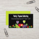 Roue à fromage, raisins rouges et blancs, verres à vin et amuse-gueules cartes de visite pour cuisiniers personnels ou privés, traiteur ou traiteur et autres repas et vin, culinaire ou service de fête alimentaire. Lumineux et colorés, beaucoup de place pour vos informations d'affaires.