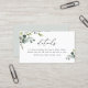 Conçue pour coordonner avec notre collection Boho Greenery mariage, cette carte de détails personnalisable taille carte de visite, présente des feuilles de verdure aquarelle avec texte calligraphique, associée à un serif élégant en noir et une option pour ajouter du code QR sur le dos. Éléments correspondants disponibles.