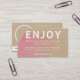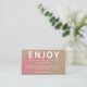 Passen Sie diese angesagte Discount Business Marketing Card an. Dies ist ideal für E-Commerce-Unternehmen wie Boutique, Etsy Store oder andere kleine Unternehmen. Es enthält den Satz "ENJOY" und hat einen anpassbaren Text, um weitere spezielle Angebotsdetails zu erklären. Auf der Rückseite finden Sie Kontaktinformationen zum Unternehmen.