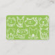 Eine Visitenkarte für die Happy Petsitters da draußen. Diese Karte bietet kleine Zeichnungen von Katzen und Hunden in grün, sodass Ihre Details über und unter den Haustieren sein können. Die Rückseite ist auch grün mit niedlichen Katzen und Hunden dekoriert. Der gesamte Text wird bearbeitet