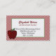 Große schauende Lehrer-Visitenkarte, mit einem dunkelroten und weißen karierten Hintergrund, auf der Front der Karte. Ein weißer Textbereich, umrandet mit einer prägeartigen schauenden grünen Grenze, hat einen saftigen roten Apfel, die untere links Ecke zu verzieren. Die Rückseite der Karte ist als Verabredungskarte entworfen. Aller Text ist kundengerecht, zu sagen, was Sie wollen. Nette Visitenkarteschablone für Lehrer und Tutoren.