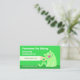 Niedliche Visitenkarte für Heimtiersitzer in kräftig grünen Farben. Eine lächelnde Katze lehnt sich in einen Streichelarm.