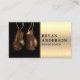Hanging Boxing Gloves Business Card mit goldfarbenem metallischem Hintergrund.