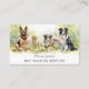 Eine Visitenkarte für Aquarellhunde. Ideal für einen Hundeschlittengänger, Haustier, Hundeschlitten, Boarding oder Hundeschlittenbetreuung. Auf weißem Hintergrund sind die Aquarellbilder von vier Hunden, darunter ein deutscher Hirte, ein Labrador und eine Grenzkollie, von Wald und Grün umgeben. Persönlich gestalten, indem Sie Ihre Geschäfts- und Kontaktdaten an der Vorderseite und hinten hinzufügen.