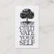 Ein inspirierender Slogan mit Baum, Wurzeln und typografischem Design. "Kultiviere dich selbst". Die Rückseite beinhaltet meinen Slogan. Fügen Sie Ihren Titel hinzu. Ideal für einen Lebensberater, Therapeuten und als allgemeine Visitenkarte.