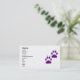 Geschäftskarte mit den lila Welpentatzen. Verlassen Sie einen dauerhaften Eindruck bei der Werbung Ihres Geschäfts.