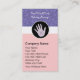 Massage Visitenkarten mit Masseuse Hand, floraler Hintergrund und großartiges Textlayout auf einem rosa lila-weiß Hintergrund. Ideal für alle Visitenkarten-Themen, die sich auf Masseuse, Physiotherapie oder Physiotherapeuten beziehen.