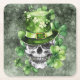 Vivid Skull with Green Hat Illustration Rechteckiger Pappuntersetzer