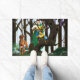 Ein rot haariger Elf und ihr Jagdhund sind auf der Jagd in einem Wald!