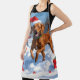 Vizsla läuft in Snow mit Weihnachtshut Schürze
