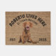 Vizsla Personalisiert Dog Liebhaber willkommen vor der Tür. Diese Begrüßungsmatte kann mit dem Namen Ihres Hundes personalisiert werden, der Slogan kann auch geändert werden oder Sie können ein Foto Ihres eigenen Hundes verwenden (stellen Sie sicher, dass es transparent ist). Text liest: Roberto lebt hier... Alle Leckereien begrüßen das Bearbeiten des Designs, um den Schriftart, die Farben und die Hintergrundfarbe zu ändern. Verwenden Sie beim Ersetzen des Hundes ein transparentes Bild. Ein wunderbares Geschenk für ein Party, Ferien, Hundefreunde und für jeden Anlass.