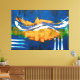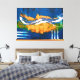 Campos de azul cobalto intenso enmarcan una franja naranja fundida en el centro, mientras que amplios arcos blancos y azules atraviesan la escena como corrientes fluidas. La composición presenta un movimiento dinámico mediante capas de pintura, texturas marcadas y pinceladas seguras que sugieren el diálogo entre el viento y el agua. Los reflejos esmeralda y las gotas blancas verticales aportan contrapunto y profundidad, equilibrando el flujo horizontal. El resultado transmite una presencia moderna y cinética que resulta a la vez enérgica y controlada. Una pieza impactante para salas de estar, oficinas o recibidores contemporáneos.