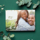 Partagez vos vœux de vacances avec ces cartes de Noël chic avec votre photo préférée en orientation paysage ou horizontale en plein papier. "Croire" apparaît en surimpression de texte blanc dans une typographie élégante de style écriture manuscrite. Personnalisez avec vos noms et l'année en bas. Les cartes se retournent sur des rayures aquarelles taupe grège pastel avec une superposition de neige.