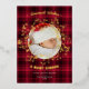 Un modèle de carte de vœux moderne et doux pour annoncer la naissance d'un bébé pour les fêtes de fin d'année, avec un thème hivernal, mettant en vedette un cadre botanique hivernal fantaisiste dessiné à la main avec une véritable feuille d'or, une calligraphie moderne et une typographie pour le titre : "Vœux chaleureux et baisers de bébé" avec une véritable feuille d'or également, sur un fond douillet à carreaux rouges de Noël. Modèles pour deux photos.