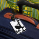 Lassen Sie Ihr Gepäck heraus stehen auf einem Flughafenkarussell mit einzigartigen Umbauentwürfen! Dieser zeitgenössische Gepäckumbau der feinen Kunst kennzeichnet ein modernes abstraktes Schwarzweiss-Muster eines Silhouette Dunkel-mit Augen Junco (Junco hyemalis) hoch gehockt auf einer bloßen Niederlassung in einem Baum. Dieser Vogel ist wirklich eine Art kleiner, grauer und weißer Spatz. Die Rückseite hat Ihre ganze persönliche Information sowie einen anderen kleinen Vogel. Aller Text kann besonders angefertigt werden.