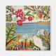 Vögel im Garten II von Karen Fields. Ein Vogel umgeben von bunten Blume und Grün.