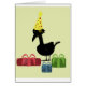 Schwarzer Vogel in einem Partyhut mit Geschenken