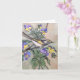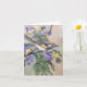 Auf dieser Karte befindet sich ein schwarz-gelber Vogel, der auf einem Zweig steht. Im Hintergrund sind lila und gelbe Stiefmütterchen. Bleib drinnen.