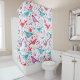 Rote, rosa, lila und aquamarine Vögel und Blume auf weißem Hintergrund. Originelle Kunst von Nic Squirrell.