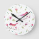 Niedliche kleine Vögel und Blumen mit Knospen- und Blatmuster über kundengerechter Uhrschablone des weißen Hintergrundes