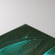 Ein buntes Fraktal, das einem Dschungelvogel ähnelt. Die Primärfarbe ist grün; Blau und Gelb sind ebenfalls hervorgehoben. Passen Sie Ihren eigenen Text an.