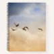 Dieses Design zeigt ein Bild eines Vogelschwarms, der durch einen bewölkten blauen Himmel fliegt. Das Sonnenlicht strömt in der Ferne. Die Tiere in der Luft können als Symbole der Freiheit oder einfach als ein schöner Anblick angesehen werden.