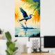 Vogelmalerei mit trifarbenem Heronfisch im Sumpf Poster
