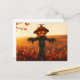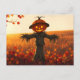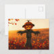 Vogelscheuche mit Kürbiskopf im Herbst Postkarte