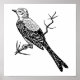 Ein Scherbenvogel, benannt nach der gegabelten Form seines Schwanzes. Dieser Scherbenvogel wird in fett-schwarz-weiß gezeichnet, mit schönen Federdetails. Er sitzt auf einem Ast.