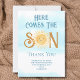 Le carte de remerciements de baby shower de ce mignon garçon comporte le texte "Here Comes The Son" en typographie rétro bleue avec un soleil aquarelle jaune, des nuages et un ciel bleu. Facile à personnaliser. Parce que nous créons notre oeuvre, vous ne trouverez pas cette image exacte d'autres designers. Aquarelle originale © Michele Davies.