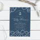 Nos invitations à la douche bébé chic et côtière en bleu du port présentent une corde marine blanche avec l'illustration de l'ancre d'un navire. "Un petit marin est sur le chemin" apparaît au-dessus de vos détails de baby shower en lettres de style nautique.