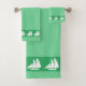 Beau motif de yacht à voile sur vert émeraude arrière - plan serviettes de bain.