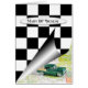 Voiture vintage avec drapeau à damiers noir et blanc pour 100ème anniversaire.