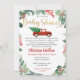 Fête de Noël par des invitations à la douche pour fêter la future maman! Ces invitations comprennent de la verdure aquarelle peinte avec un camion rouge transportant un arbre de Noël !
