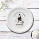 Das Design zeigt eine coole, niedliche Eule in einem schwarzen Abschluss-Gewand und Kappe und hält ein Abschluss-Diplom unter einer Wolke von Konfetti. Einzigartige Teller für Vorschulen, Kindergarten, Grundschüler und mehr!